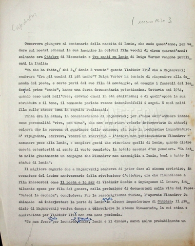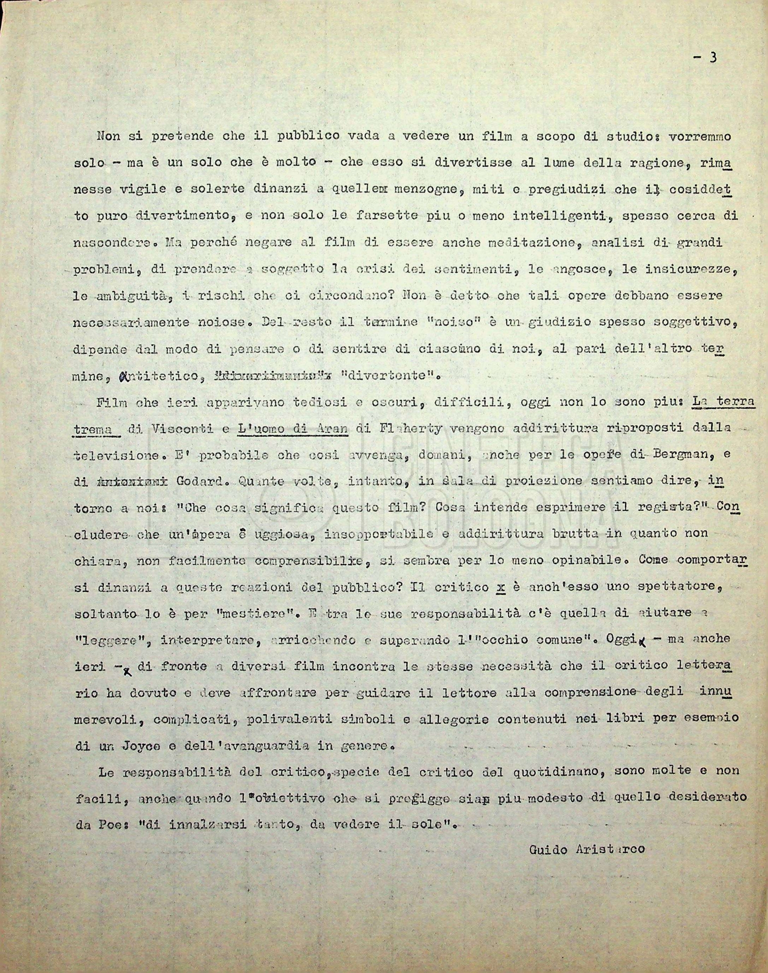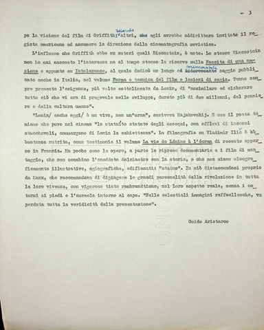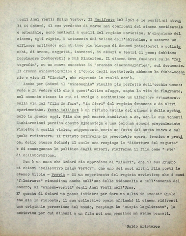 Contiene i testi datt., con correzioni mss., degli interventi inviati da Guido Aristarco a Radio Capodistria.