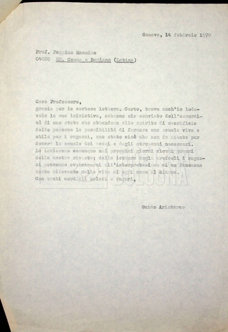 – Una lettera del “Dopolavoro Postelegrafonico, sezione di Genova” inviata a Guido Aristarco per invitarlo all’inaugurazione della sede sociale sita in Genova;