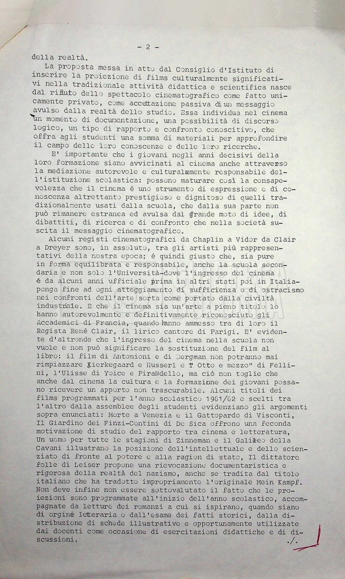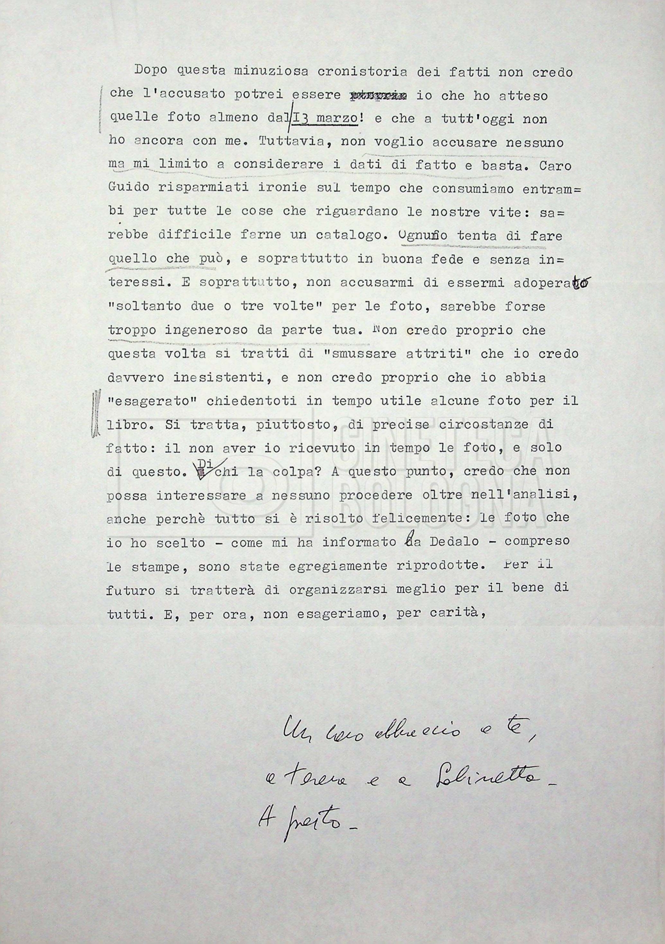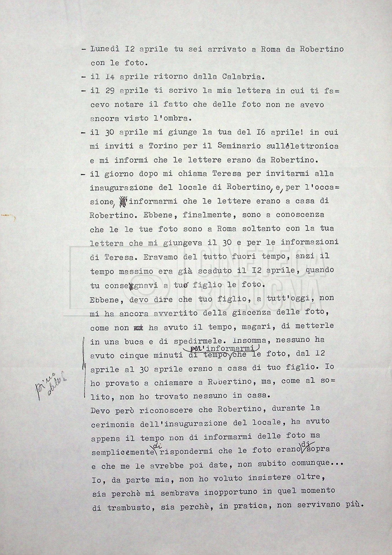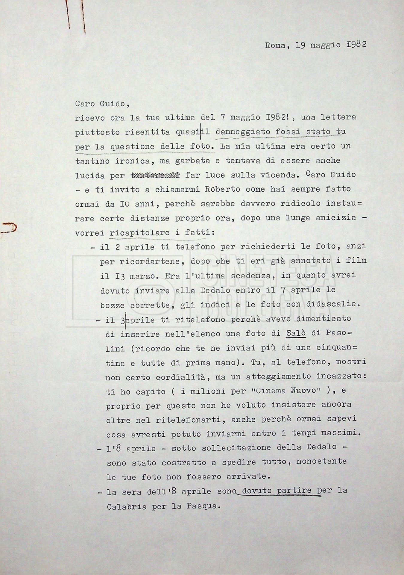 – La minuta di una lettera di Guido Aristarco inviata a Renzo Renzi e riguardante gli ultimi incontri relativi all’immagine elettronica svoltisi a Porretta Terme (1 dicembre 1982);