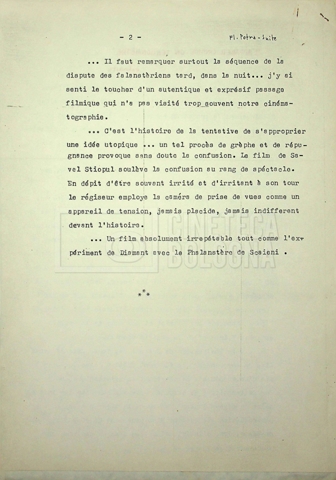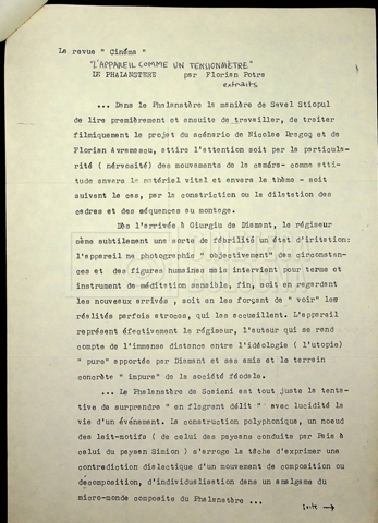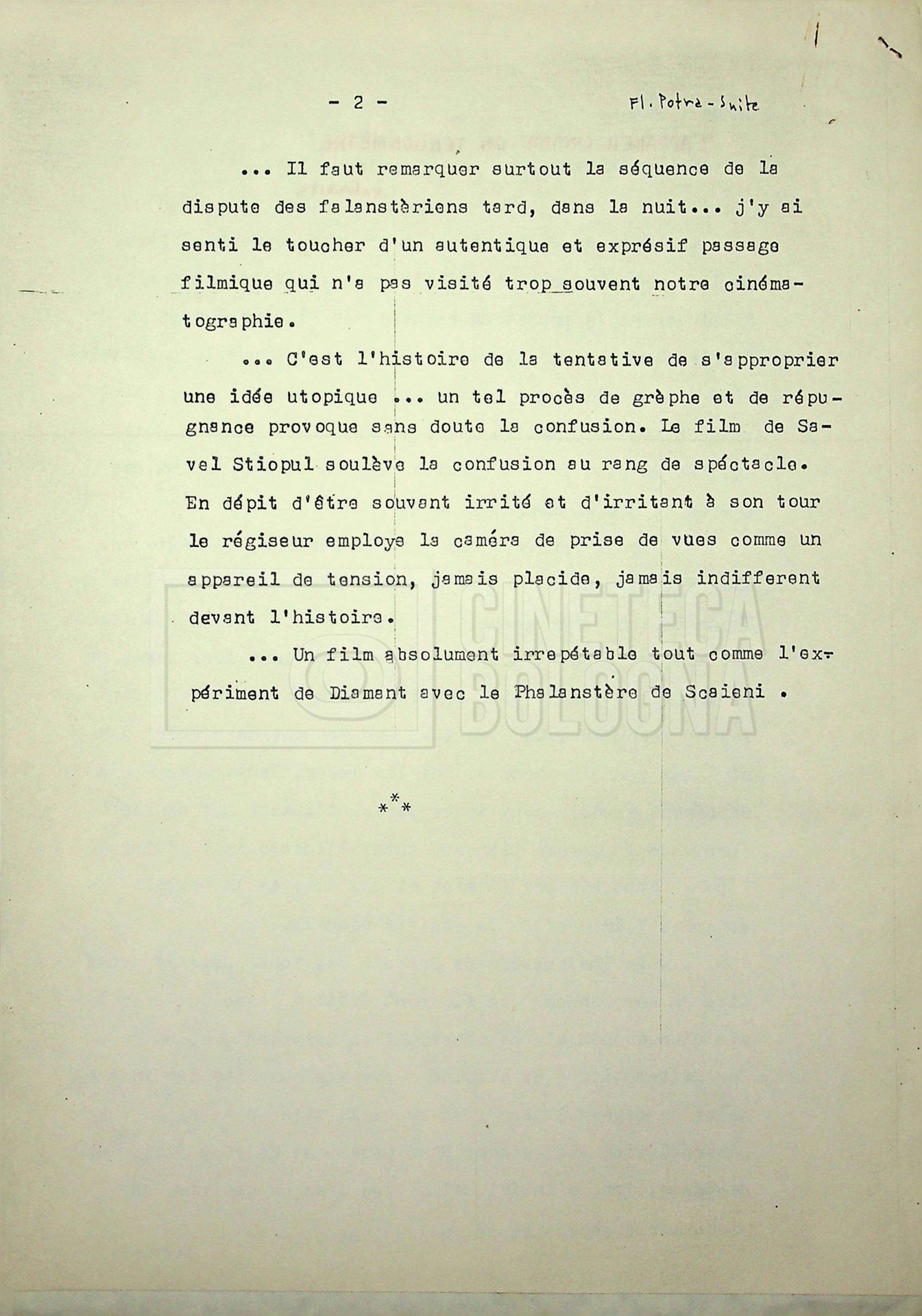 – Una lettera di Elaine Mancini inviata a Guido Aristarco per proporre recensione scritta dall’amico Jay Leyda (29 ottobre 1982); a cui segue la minuta della risposta di Guido Aristarco (25 novembre 1982);