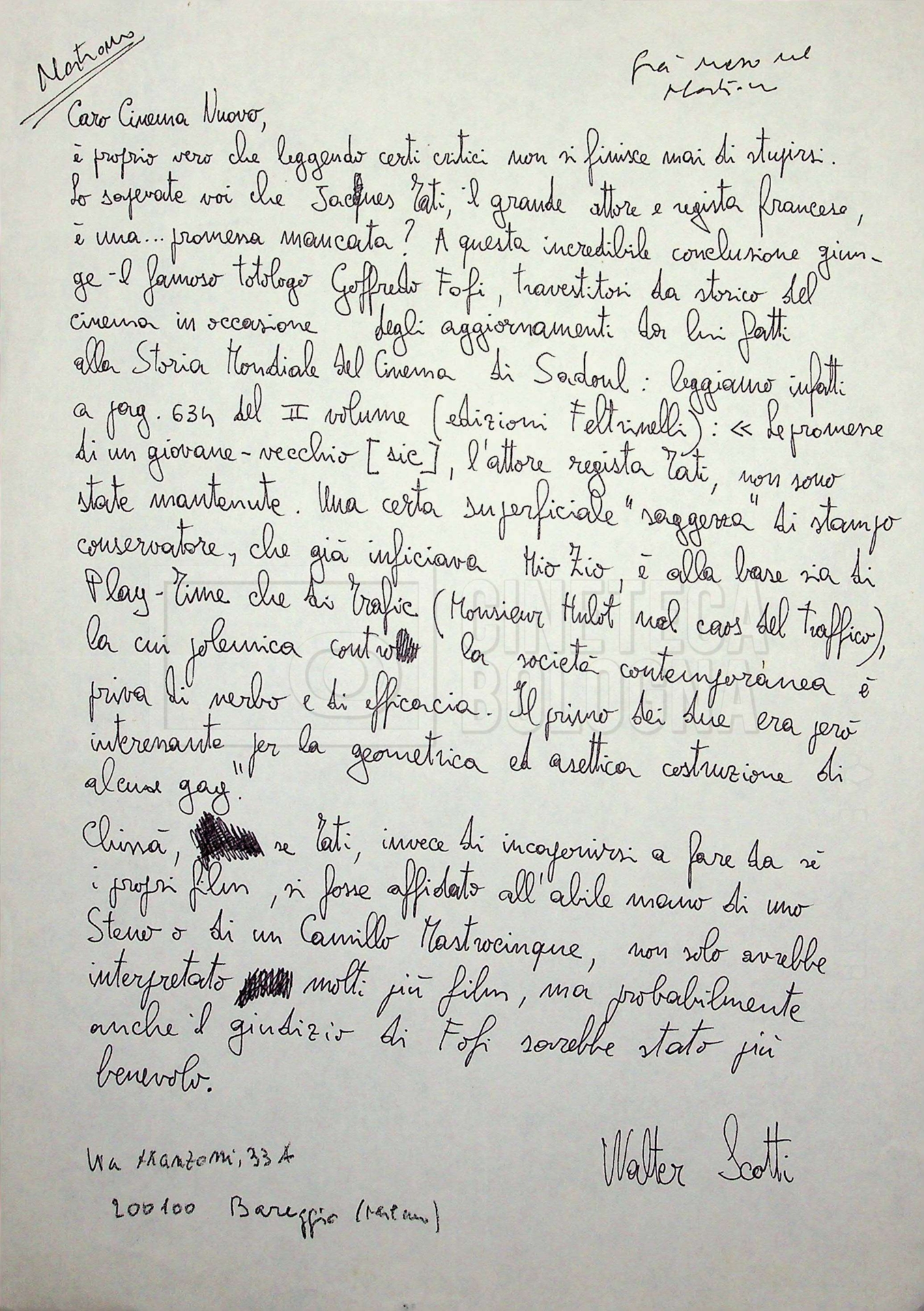 – Lettere di vari amici e collaboratori della rivista “Cinema Nuovo” in merito a pubblicazioni, come Gino Raya, Vincenzo Pacileo, Roberto Alemanno, Angelo Gianni, Giuliano Giuricin, Orio Caldiron, Gianfranco Corbucci, Roy Armes, Nevio Tebano;