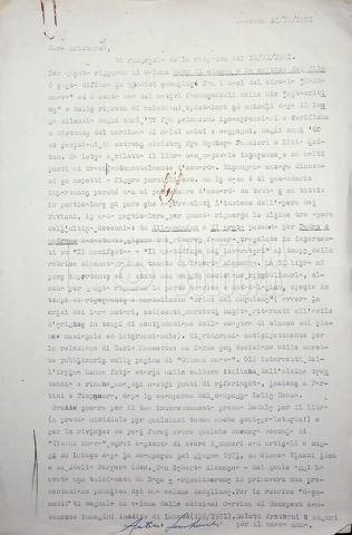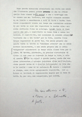 – La minuta di una lettera di Guido Aristarco inviata alla “Fondazione Clementina Calzari Trebeschi” per esprimere sostegno a seguito della sentenza sulla strage di Piazza della Loggia di Brescia (24 marzo 1982);