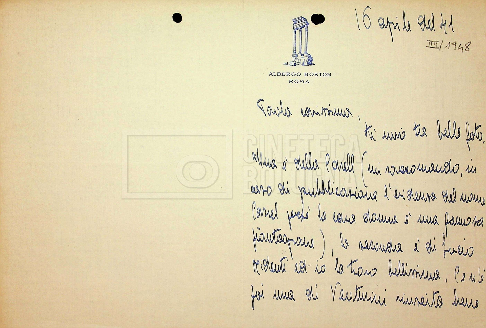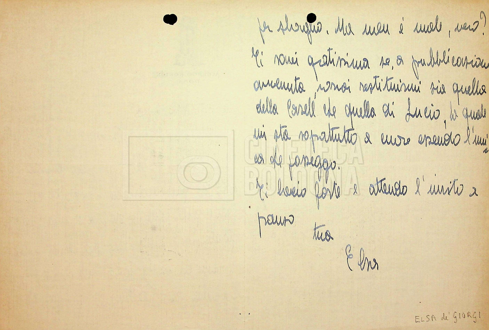 Si segnala che una lettera è inoltrata a Mino Doletti per conto dell’avvocato di Elsa de Giorgi, Giacomo Lwow (19 maggio 1939).