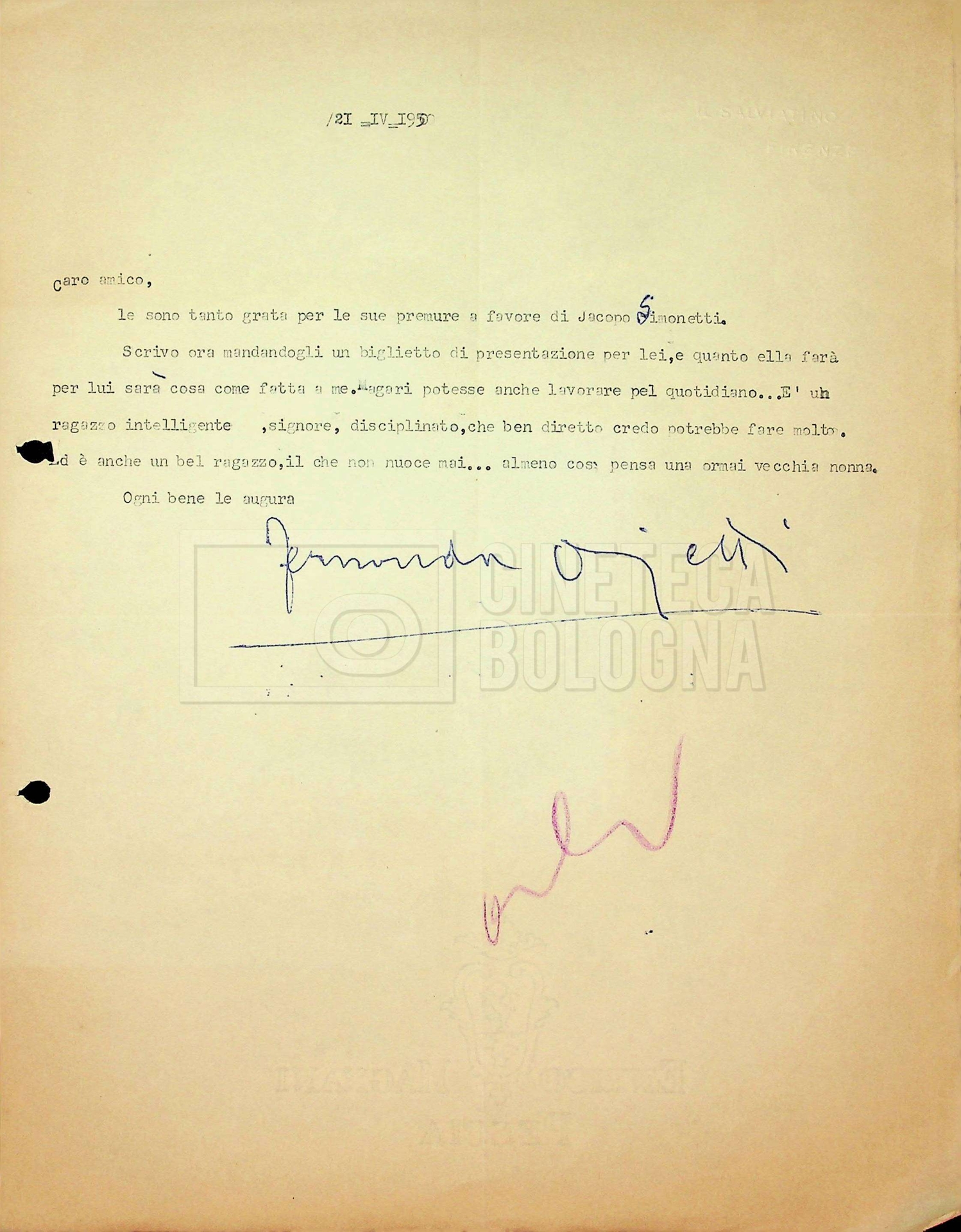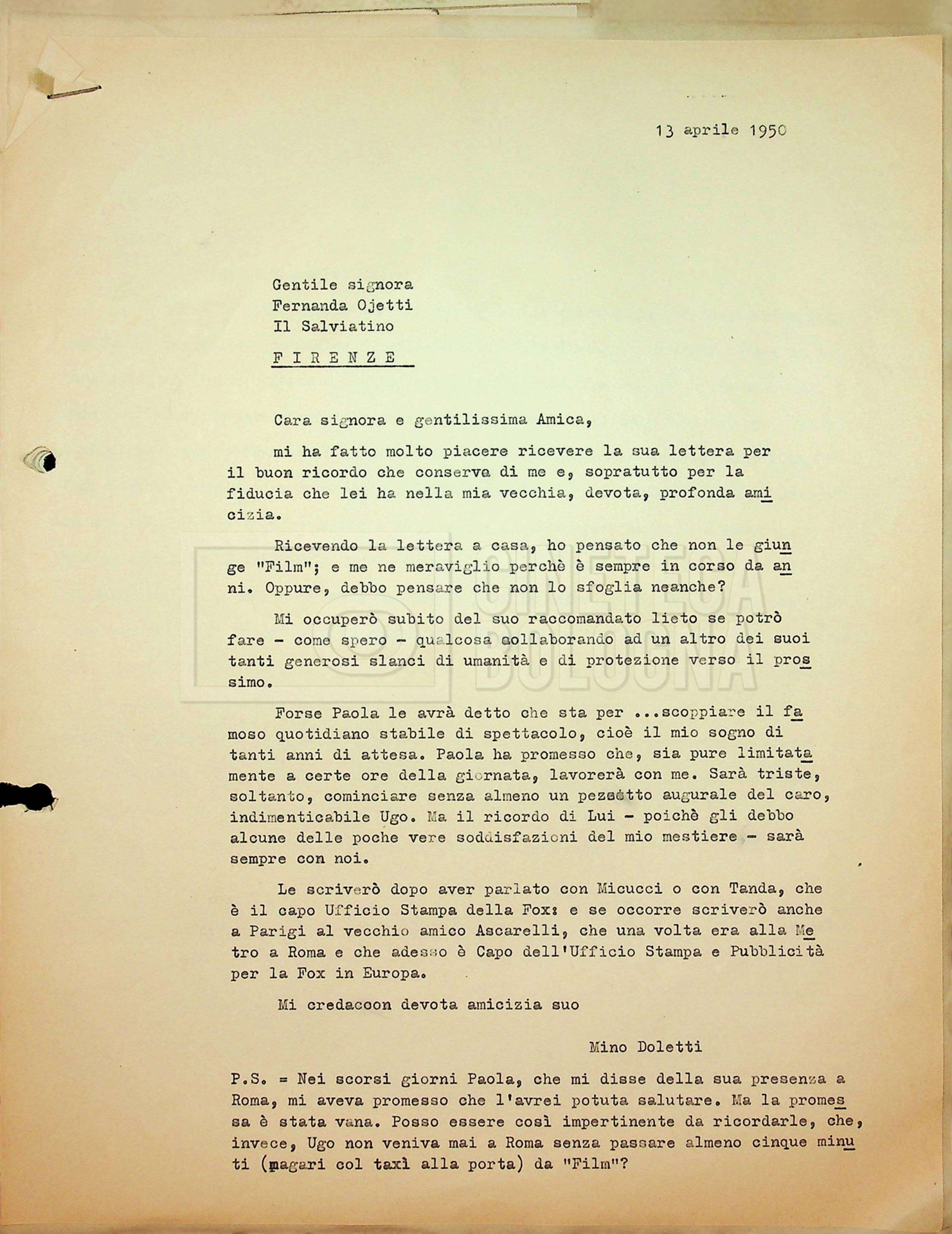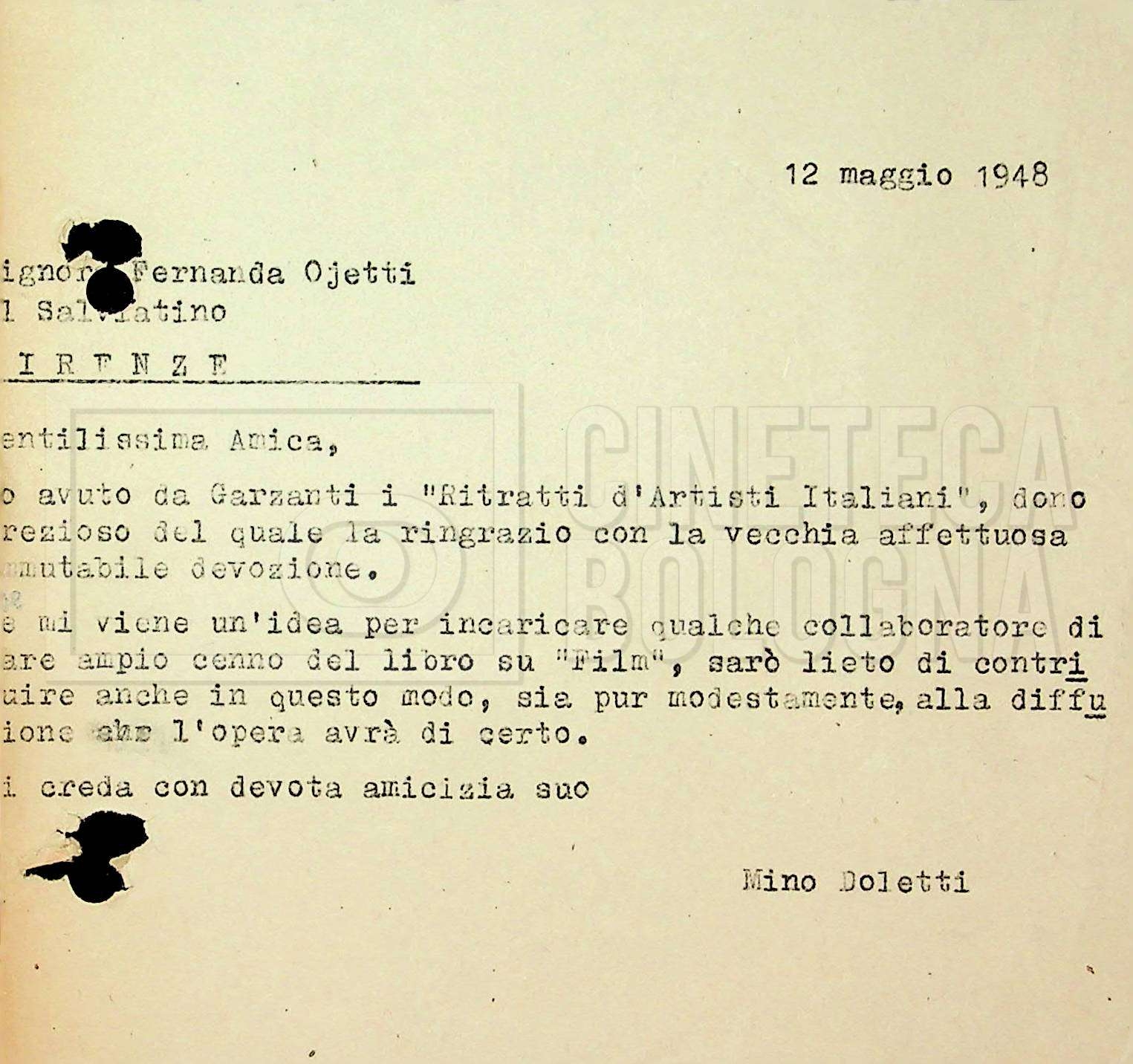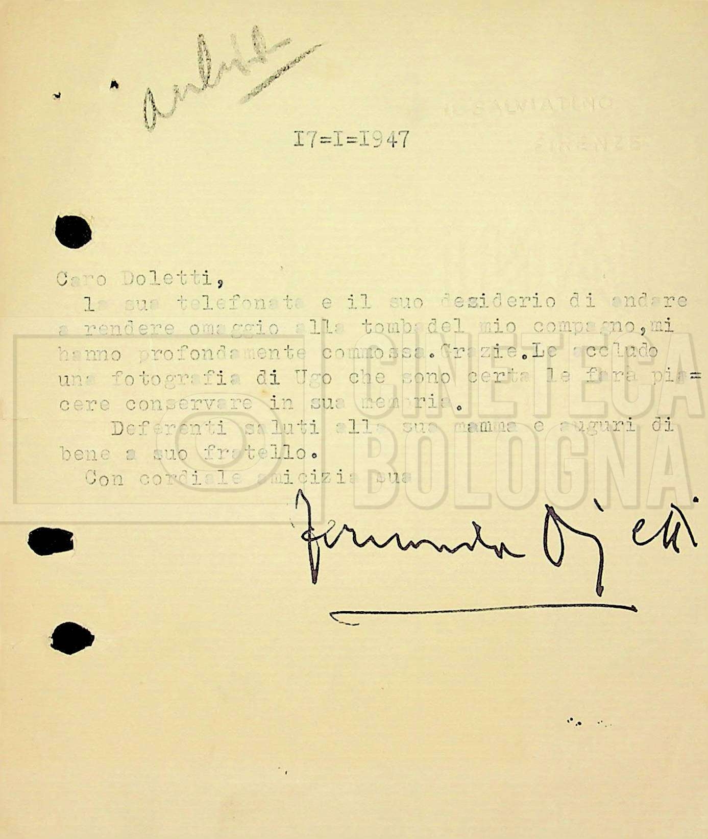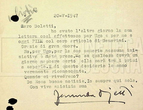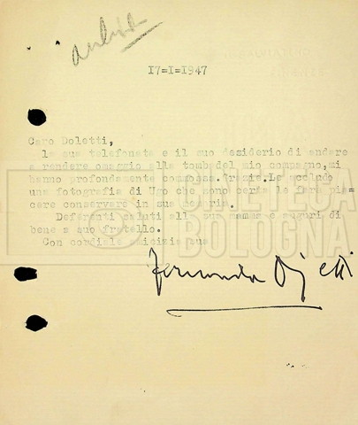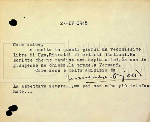 Torna alla banca dati Tra Mino Doletti e Fernanda Ojetti Unità archivistica Archivio Mino Doletti / Il secondo dopoguerra e la televisione / Corrispondenza generica Informazioni archivistiche Cronologia: 17 gennaio 1947 – 11 luglio 1951 Numero di ordinamento definitivo: 2040 Numero di ordinamento provvisorio: 03.435 Descrizione fisica: fascicolo cc. 16 Immagini digitalizzate Unità archivistiche correlate Vai alla banca dati SCHEDA ARCHIVISTICA Tra Mino Doletti e Gilberto Severi SCHEDA ARCHIVISTICA Da Pietro Portalupi a Mino Doletti SCHEDA ARCHIVISTICA Da ‘Agenzia letteraria italo-internazionale (ALII)’ SCHEDA ARCHIVISTICA Tra Mino Doletti, Franco Barbieri e il consorzio cinematografico ‘Edizioni internazionali artistiche (EIA)’, poi ‘Cinematografica edizioni internazionali artistiche distribuzione (CEIAD)’ SCHEDA ARCHIVISTICA Dalla ‘Diamond Film’ a Franco Barbieri SCHEDA ARCHIVISTICA A Mino Doletti SCHEDA ARCHIVISTICA Da Mino Doletti a ‘Film Unione’ SCHEDA ARCHIVISTICA Tra la DIES e la redazione di “Film” SCHEDA ARCHIVISTICA Tra Mino Doletti e Silvio Giacotto SCHEDA ARCHIVISTICA Tra Mino Doletti e Daniele Cellamare SCHEDA ARCHIVISTICA Tra Franco Barbieri e l’agenzia ‘Foto Romani’ di Roma SCHEDA ARCHIVISTICA Da Franco Fuscà a Mino Doletti SCHEDA ARCHIVISTICA Da Nicola Fiorelli a Mino Doletti SCHEDA ARCHIVISTICA Tra Mino Doletti, l’EIDA e la ‘Società italiana degli autori ed editori (SIAE)’ SCHEDA ARCHIVISTICA Dalla redazione di “Film” ad Altimani SCHEDA ARCHIVISTICA Dal teatro ‘La Basilica’ [‘Teatro della Basilica’] di Milano