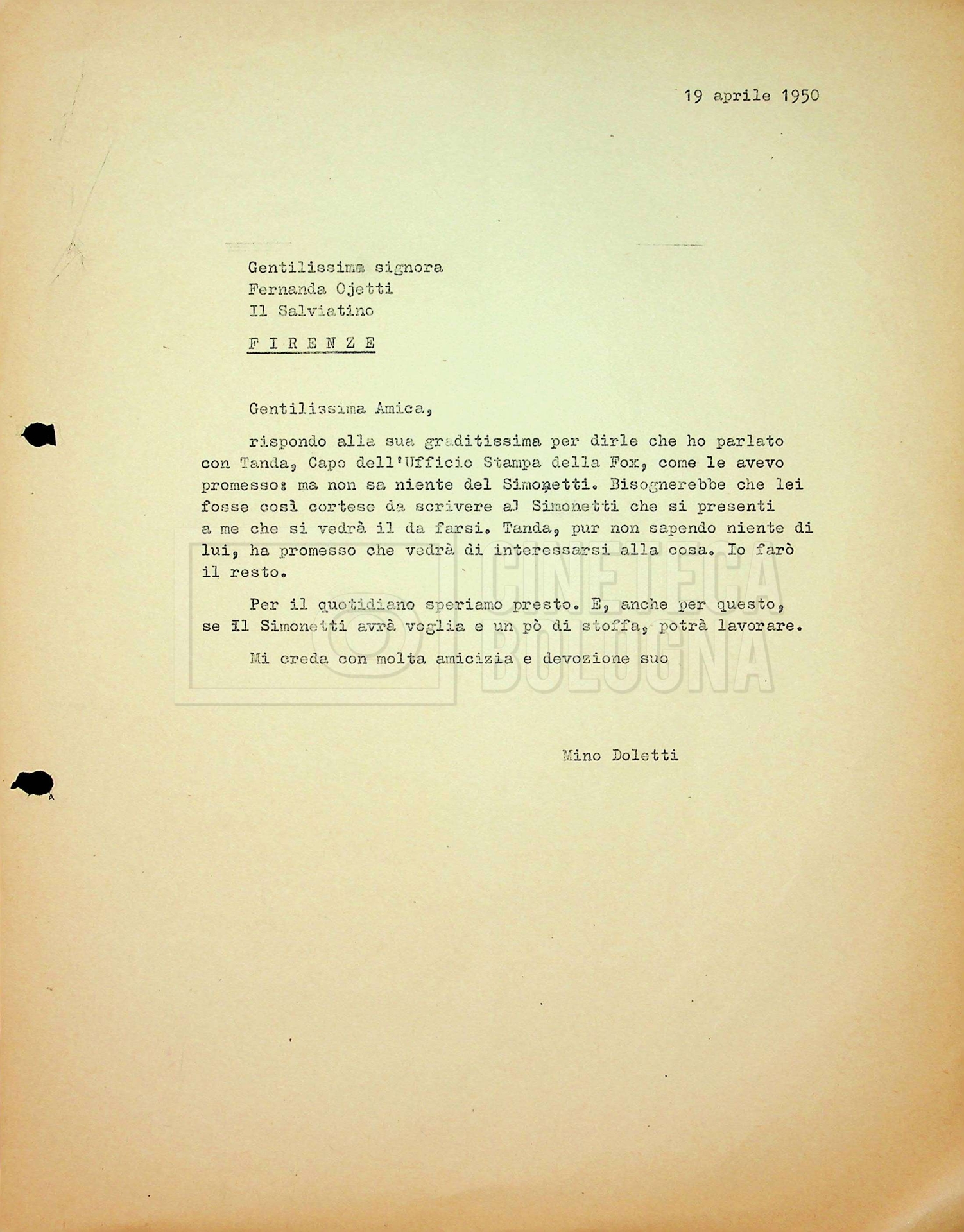 SCHEDA ARCHIVISTICA Tra Mino Doletti, Franco Barbieri e il consorzio cinematografico ‘Edizioni internazionali artistiche (EIA)’, poi ‘Cinematografica edizioni internazionali artistiche distribuzione (CEIAD)’