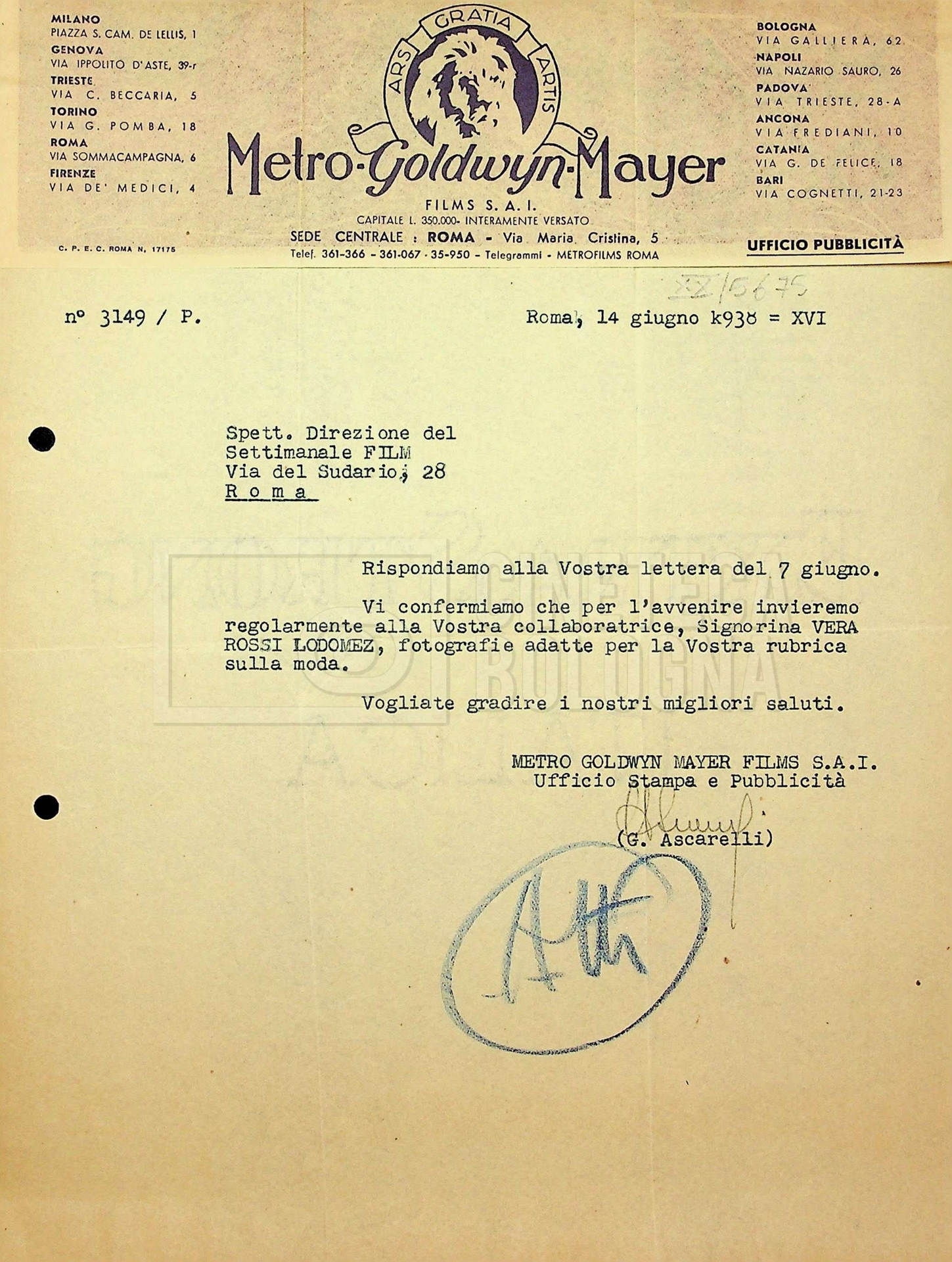Torna alla banca dati Tra Mino Doletti e Giulio Ascarelli Unità archivistica Archivio Mino Doletti / Dagli esordi alla caduta del fascismo / Corrispondenza generica Informazioni archivistiche Cronologia: 11 maggio 1939 – 16 agosto 1939 Numero di ordinamento definitivo: 49 Numero di ordinamento provvisorio: 01.048 Descrizione fisica: Fascicolo cc. 3 Immagini digitalizzate Unità archivistiche correlate Vai alla banca dati SCHEDA ARCHIVISTICA Da Dante Dini a Mino Doletti SCHEDA ARCHIVISTICA Correzioni di Mino Doletti alla recensione di Bontempelli SCHEDA ARCHIVISTICA Da [Paolo] [Paola] Borboni a Mino Doletti SCHEDA ARCHIVISTICA Da [Nenni Cortolini] a Mino Doletti SCHEDA ARCHIVISTICA Da Mario Calandri a Mino Doletti SCHEDA ARCHIVISTICA Da Ernesto Cellini a Mino Doletti SCHEDA ARCHIVISTICA Da Ferruccio Cerio a Mino Doletti e Paola Ojetti SCHEDA ARCHIVISTICA Da Ennio Cerlesi a Mino Doletti SCHEDA ARCHIVISTICA Da Marco Cesarini a Mino Doletti SCHEDA ARCHIVISTICA Bozza del testo “Cinematografo nemico – Un baby e cento bimbi” da Danilo Chili SCHEDA ARCHIVISTICA Biglietto da visita di Giorgio Chili con appunti manoscritti SCHEDA ARCHIVISTICA Da Ugo De Amicis al presidente della società ‘Nazionalcine’ SCHEDA ARCHIVISTICA “Promemoria per il dottor Doletti, direttore del giornale settimanale ‘Film’” SCHEDA ARCHIVISTICA A Mino Doletti SCHEDA ARCHIVISTICA Da “Panorama” alla redazione di “Film” SCHEDA ARCHIVISTICA Tra Mino Doletti e Tranquillo Fabbri