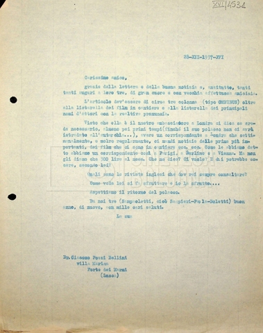 Torna alla banca dati Tra Mino Doletti, Paola Ojetti e Giacomo Pozzi Bellini Unità archivistica Archivio Mino Doletti / Dagli esordi alla caduta del fascismo / Corrispondenza generica Informazioni archivistiche Cronologia: 06 dicembre 1937 – 12 aprile 1938 Numero di ordinamento definitivo: 810 Numero di ordinamento provvisorio: 01.818 Descrizione fisica: fascicolo cc. 21 Immagini digitalizzate Unità archivistiche correlate Vai alla banca dati SCHEDA ARCHIVISTICA Da Dante Dini a Mino Doletti SCHEDA ARCHIVISTICA Correzioni di Mino Doletti alla recensione di Bontempelli SCHEDA ARCHIVISTICA Da [Paolo] [Paola] Borboni a Mino Doletti SCHEDA ARCHIVISTICA Da [Nenni Cortolini] a Mino Doletti SCHEDA ARCHIVISTICA Da Mario Calandri a Mino Doletti SCHEDA ARCHIVISTICA Da Ernesto Cellini a Mino Doletti SCHEDA ARCHIVISTICA Da Ferruccio Cerio a Mino Doletti e Paola Ojetti SCHEDA ARCHIVISTICA Da Ennio Cerlesi a Mino Doletti SCHEDA ARCHIVISTICA Da Marco Cesarini a Mino Doletti SCHEDA ARCHIVISTICA Bozza del testo “Cinematografo nemico – Un baby e cento bimbi” da Danilo Chili SCHEDA ARCHIVISTICA Biglietto da visita di Giorgio Chili con appunti manoscritti SCHEDA ARCHIVISTICA Da Ugo De Amicis al presidente della società ‘Nazionalcine’ SCHEDA ARCHIVISTICA “Promemoria per il dottor Doletti, direttore del giornale settimanale ‘Film’” SCHEDA ARCHIVISTICA A Mino Doletti SCHEDA ARCHIVISTICA Da “Panorama” alla redazione di “Film” SCHEDA ARCHIVISTICA Tra Mino Doletti e Tranquillo Fabbri