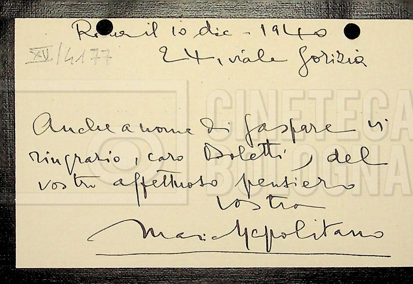 Torna alla banca dati Tra Mino Doletti, Paola Ojetti e Maria Napolitano Unità archivistica Archivio Mino Doletti / Dagli esordi alla caduta del fascismo / Corrispondenza generica Informazioni archivistiche Cronologia: 07 dicembre 1938 – 31 maggio 1943 Numero di ordinamento definitivo: 722 Numero di ordinamento provvisorio: 01.729 Descrizione fisica: Fascicolo cc. 26 Immagini digitalizzate Unità archivistiche correlate Vai alla banca dati SCHEDA ARCHIVISTICA Da Dante Dini a Mino Doletti SCHEDA ARCHIVISTICA Correzioni di Mino Doletti alla recensione di Bontempelli SCHEDA ARCHIVISTICA Da [Paolo] [Paola] Borboni a Mino Doletti SCHEDA ARCHIVISTICA Da [Nenni Cortolini] a Mino Doletti SCHEDA ARCHIVISTICA Da Mario Calandri a Mino Doletti SCHEDA ARCHIVISTICA Da Ernesto Cellini a Mino Doletti SCHEDA ARCHIVISTICA Da Ferruccio Cerio a Mino Doletti e Paola Ojetti SCHEDA ARCHIVISTICA Da Ennio Cerlesi a Mino Doletti SCHEDA ARCHIVISTICA Da Marco Cesarini a Mino Doletti SCHEDA ARCHIVISTICA Bozza del testo “Cinematografo nemico – Un baby e cento bimbi” da Danilo Chili SCHEDA ARCHIVISTICA Biglietto da visita di Giorgio Chili con appunti manoscritti SCHEDA ARCHIVISTICA Da Ugo De Amicis al presidente della società ‘Nazionalcine’ SCHEDA ARCHIVISTICA “Promemoria per il dottor Doletti, direttore del giornale settimanale ‘Film’” SCHEDA ARCHIVISTICA A Mino Doletti SCHEDA ARCHIVISTICA Da “Panorama” alla redazione di “Film” SCHEDA ARCHIVISTICA Tra Mino Doletti e Tranquillo Fabbri