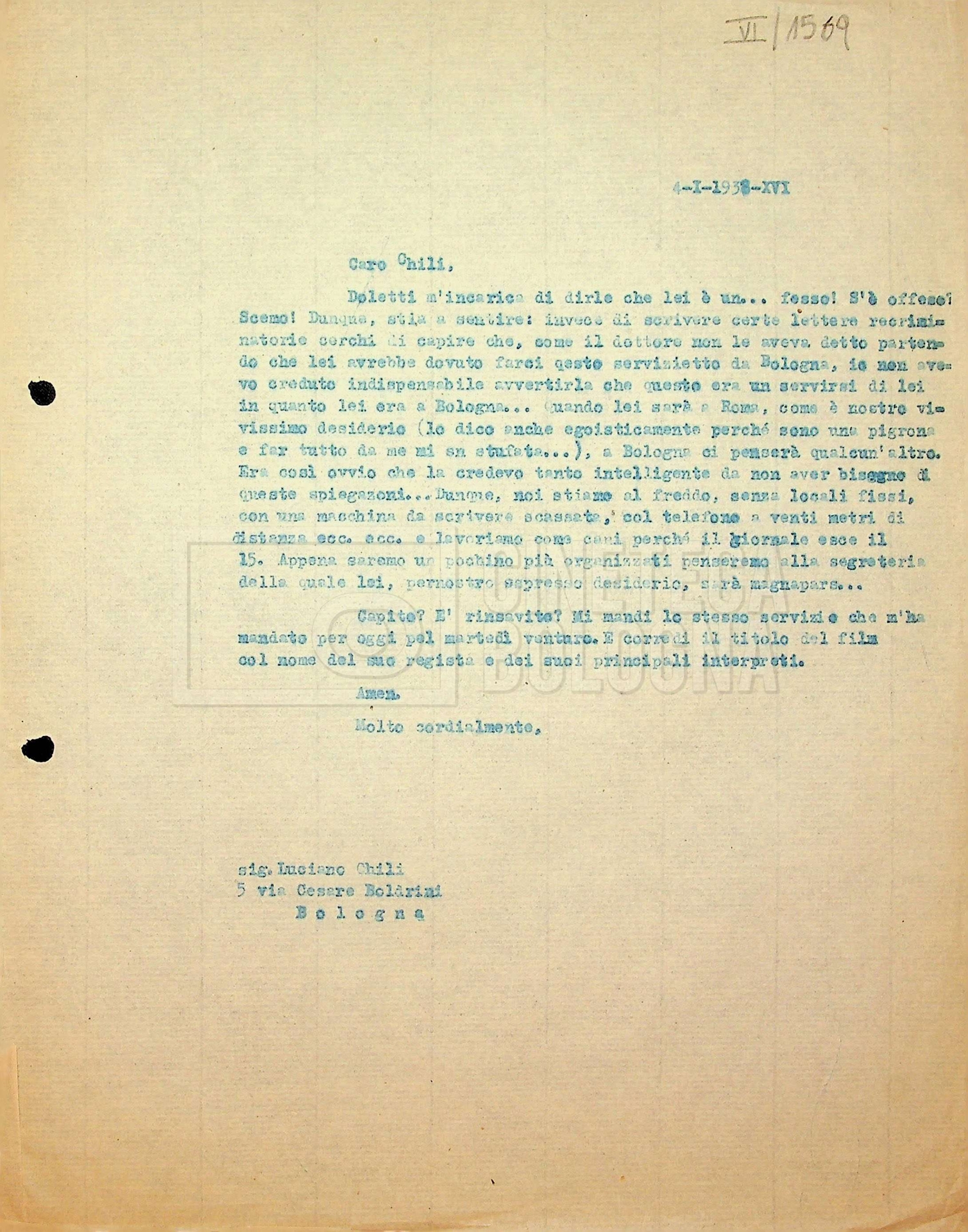 Si segnala una scambio di lettere tra Mino Doletti e Bianca Chili, madre di Luciano Chili, riguardante le difficoltà lavorative del figlio (18 maggio – 30 dicembre 1938).